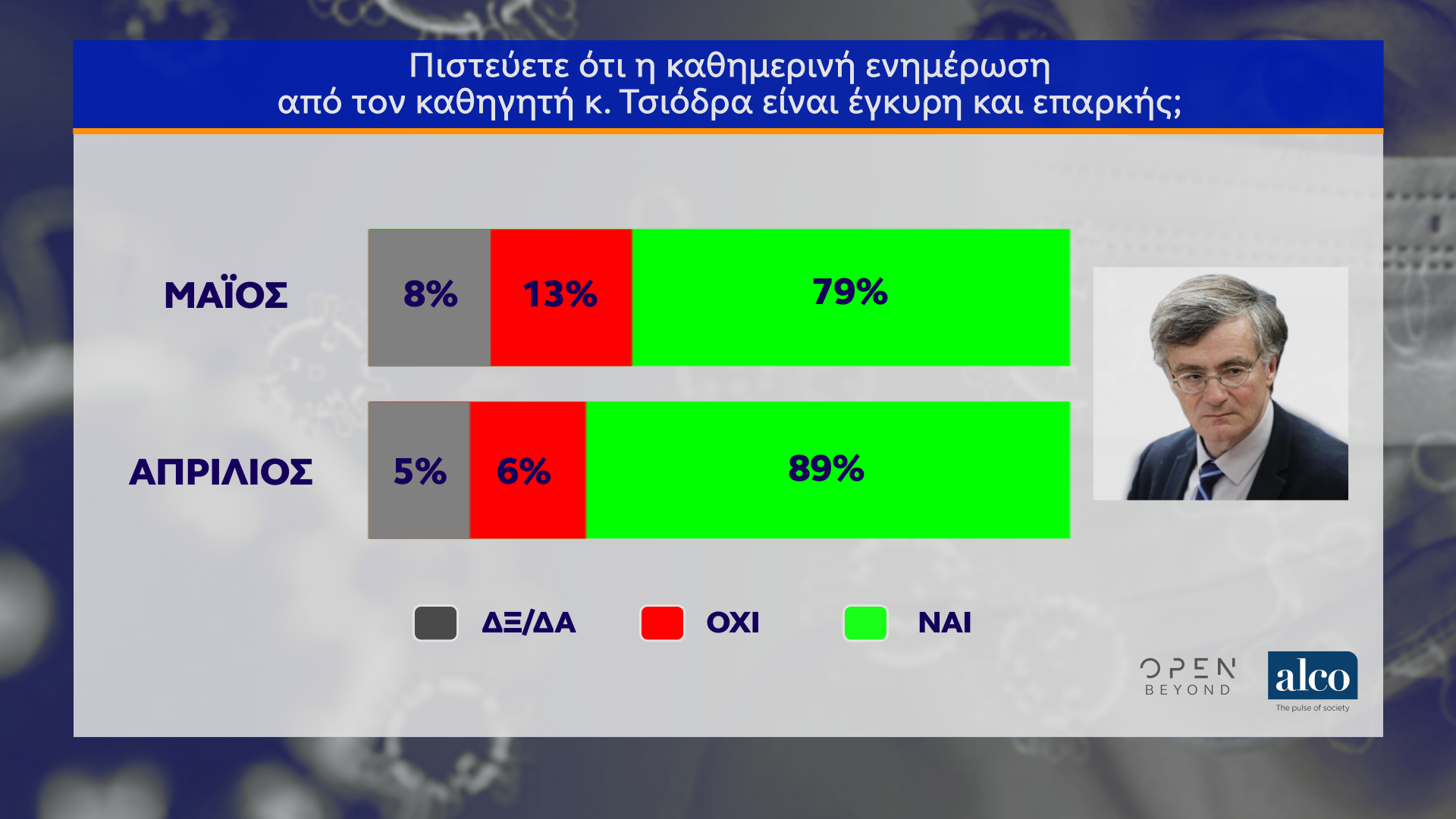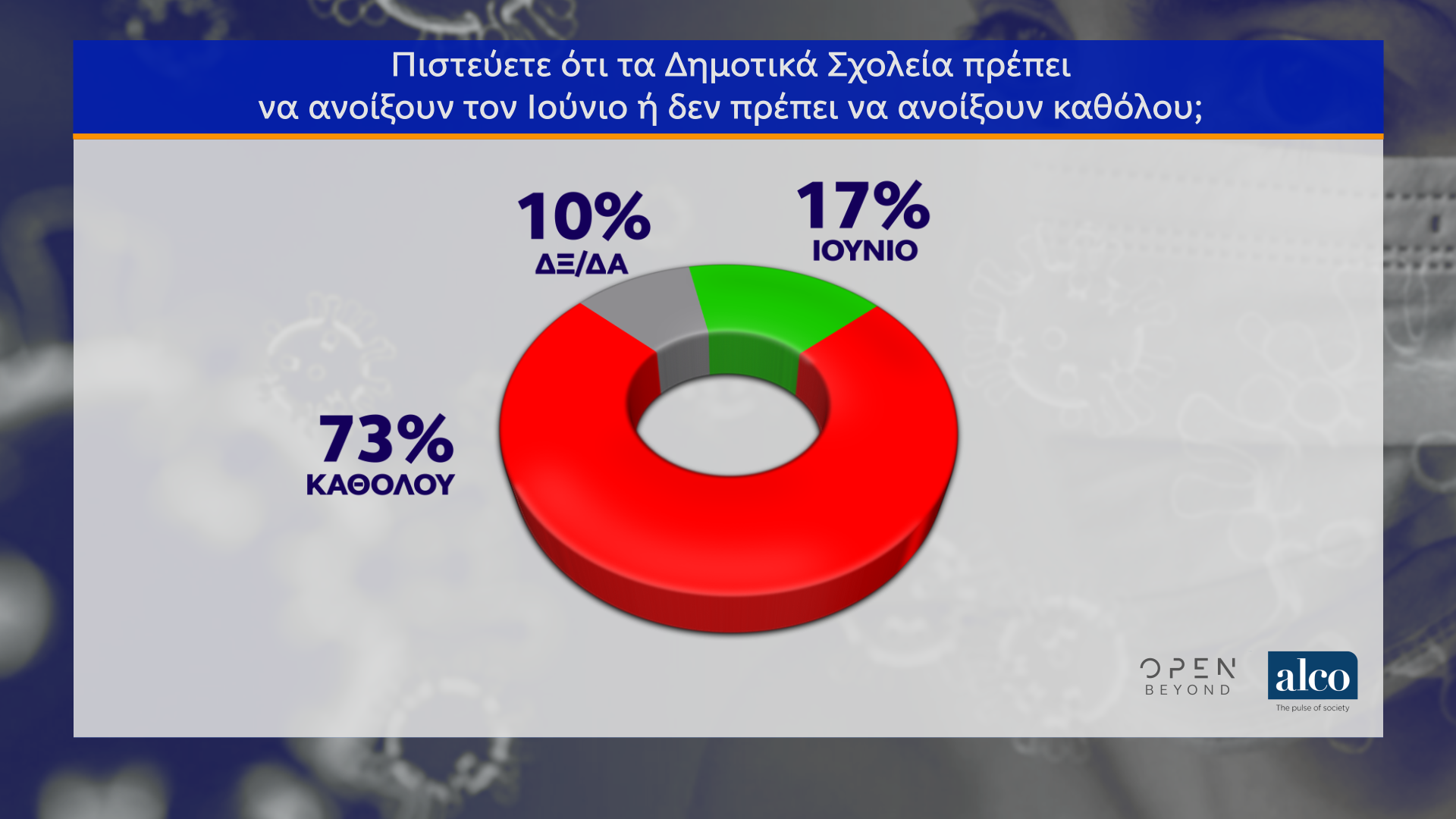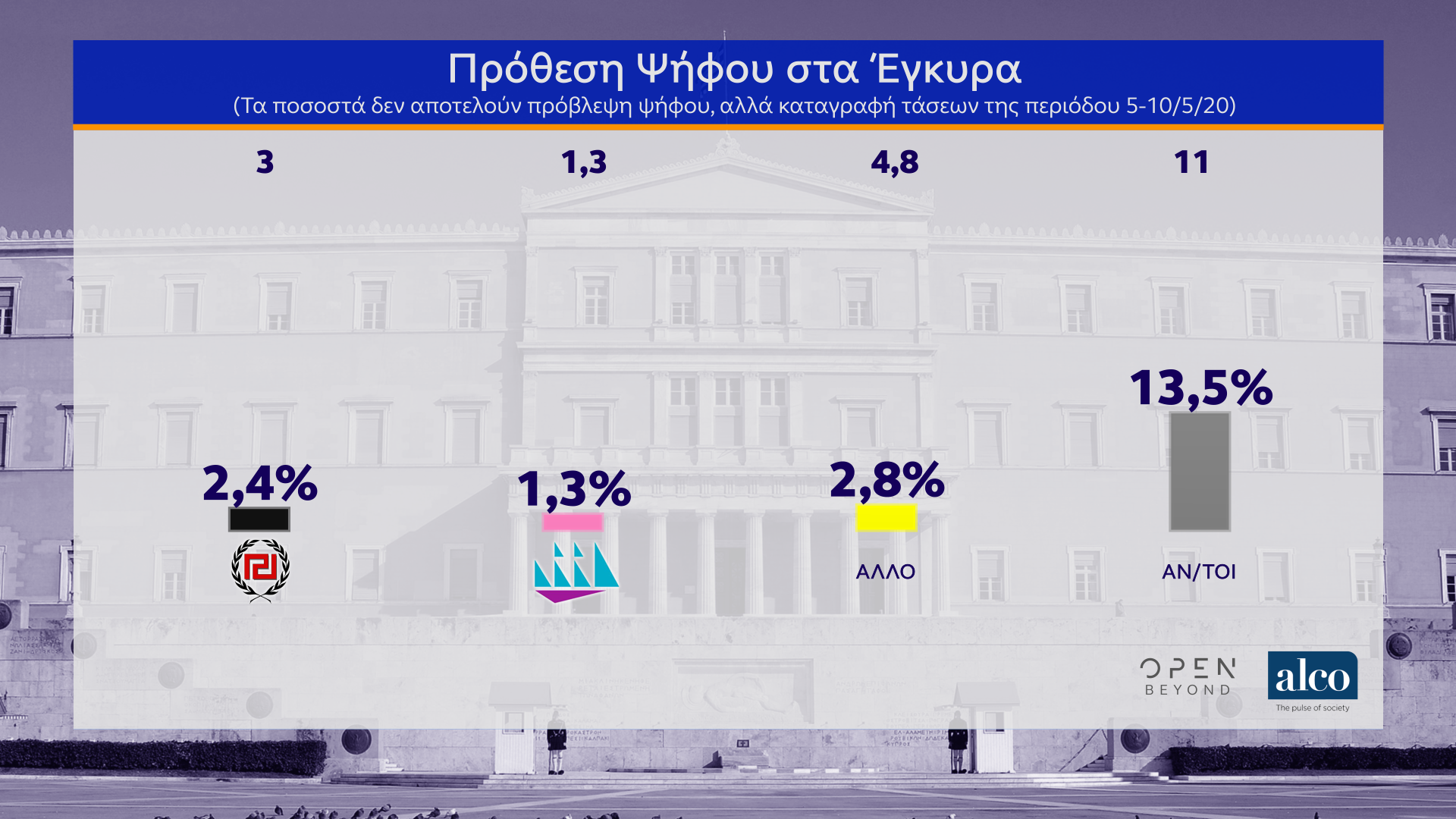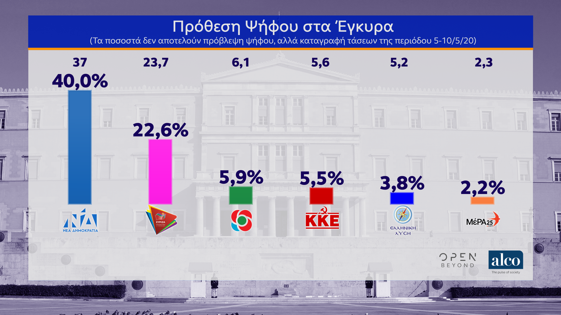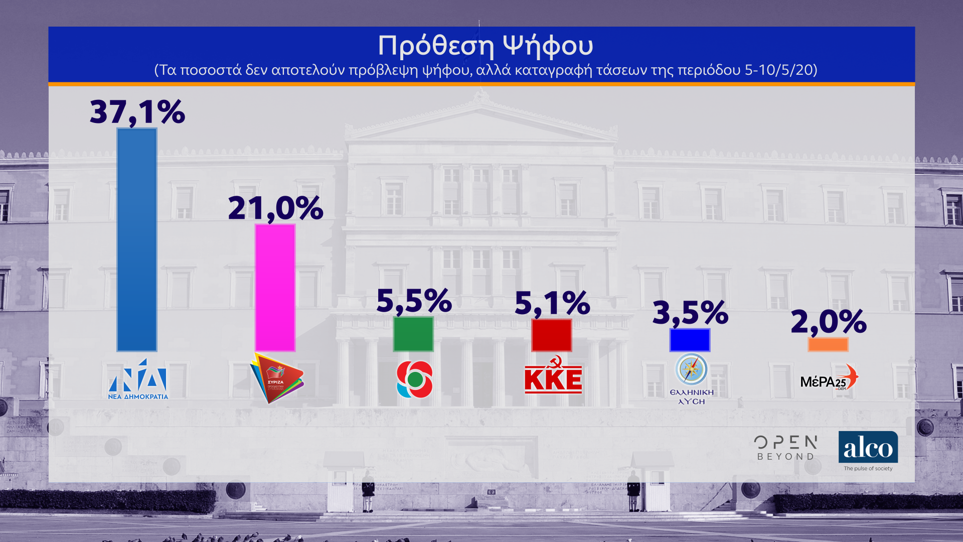 Η δημοσκόπηση της ALCO, που πραγματοποιήθηκε από τις 5 Μαϊου έως τις 10 Μαϊου 2020, για το κεντρικό δελτίο Ειδήσεων του OPEN και μεταδόθηκε την Τρίτη 12/05/2020.