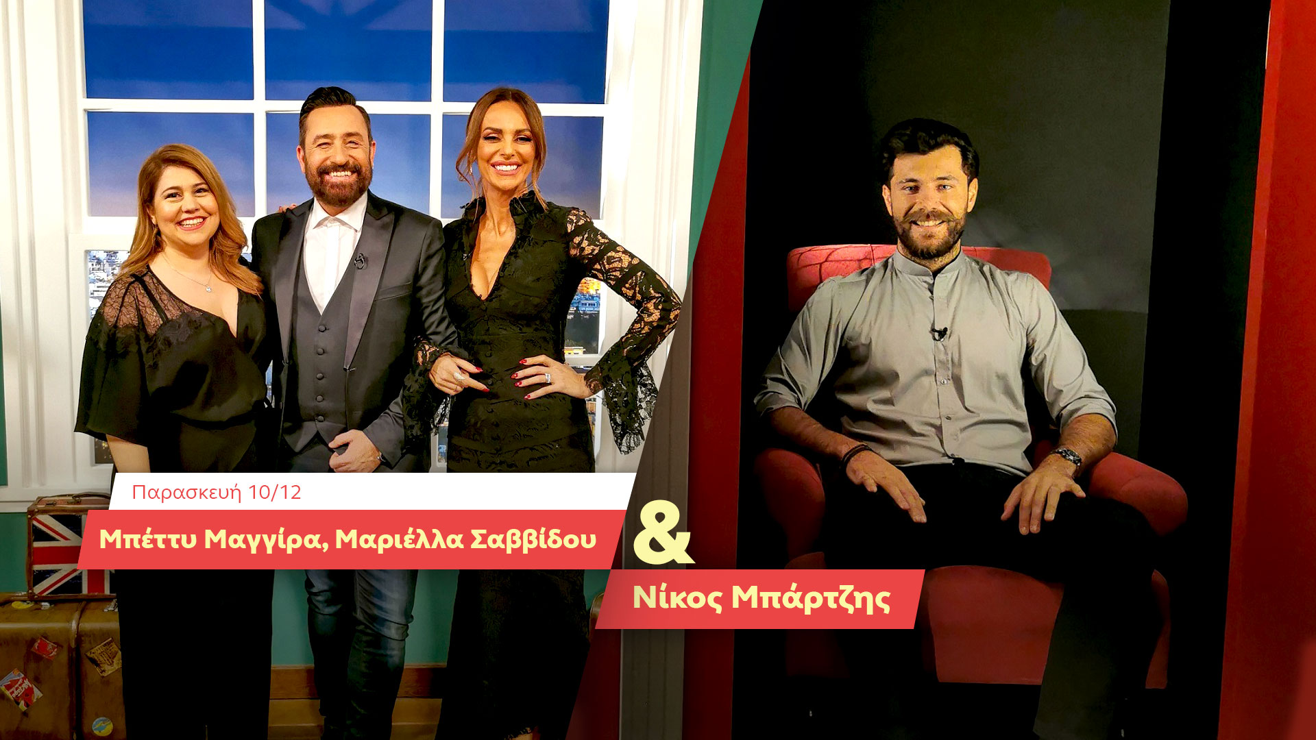 Ο Θέμης Γεωργαντάς υποδέχεται τη Μπέττυ Μαγγίρα, τη Μαριέλλα Σαββίδου