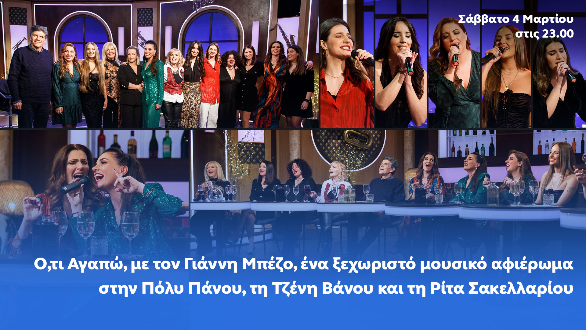 Το «Ό,ΤΙ ΑΓΑΠΩ» με τον Γιάννη Μπέζο, «υποκλίνεται» σε τρεις σπουδαίες γυναικείες φωνές του λαϊκού μας τραγουδιού, αυτό το Σάββατο 4 Μαρτίου στις 23:00 στο OPEN, και μας τις θυμίζει μέσα από ένα μοναδικό μουσικό αφιέρωμα.