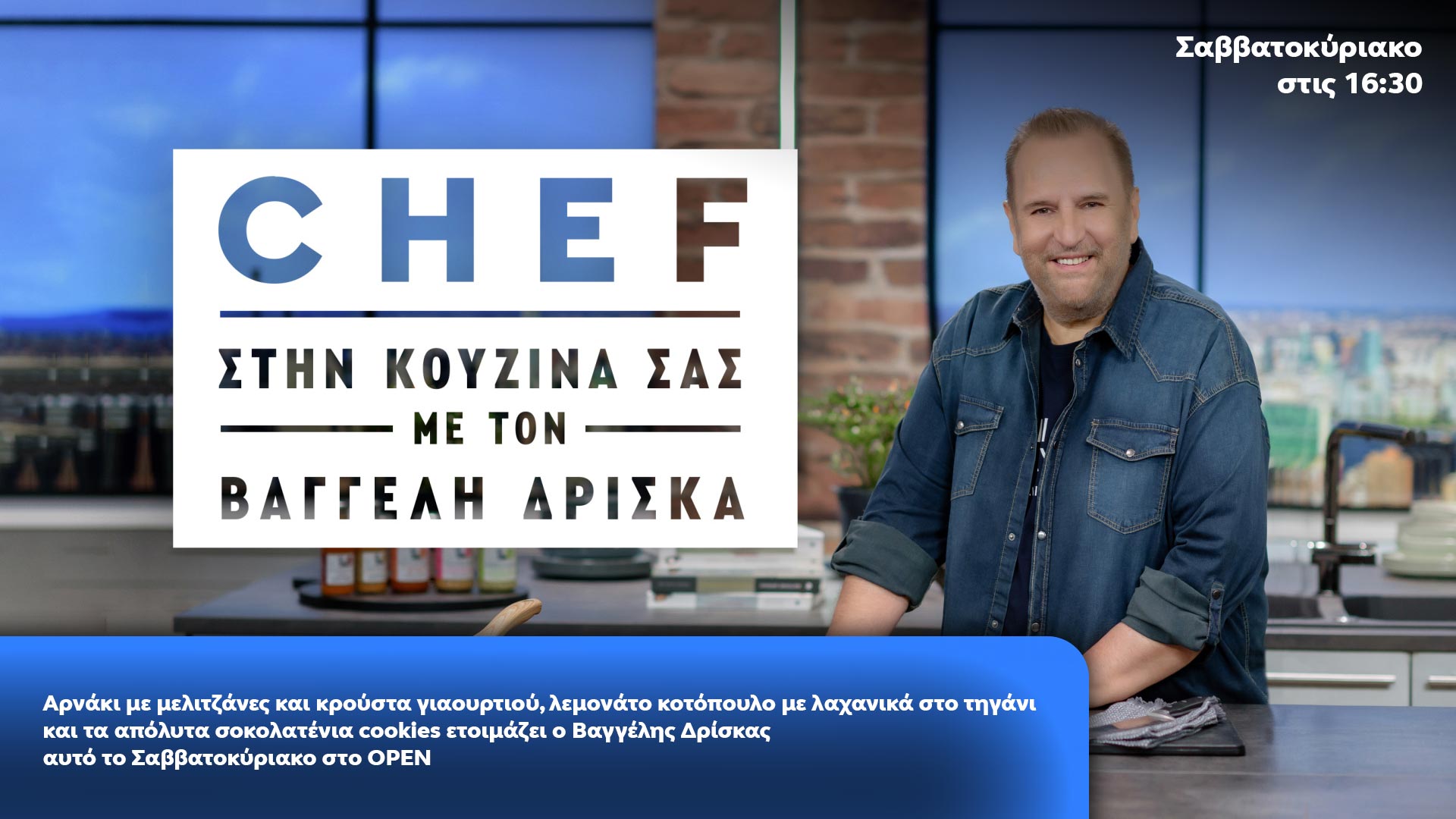 «Chef στην κουζίνα σας με τον Βαγγέλη Δρίσκα», Σάββατο 11 και Κυριακή 12 Νοεμβρίου στις 16.30 στο OPEN